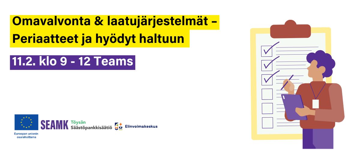 Omavalvonta ja laatujärjestelmät – Periaatteet ja hyödyt haltuun 11.02.2026 klo 9–12 Teams